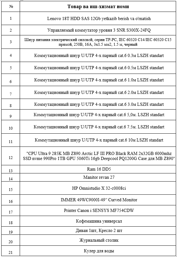 Ushbu e`lon bo`yicha tijorat takliflari 12.11.2025 sanasiga qadar qabul qilinadi.