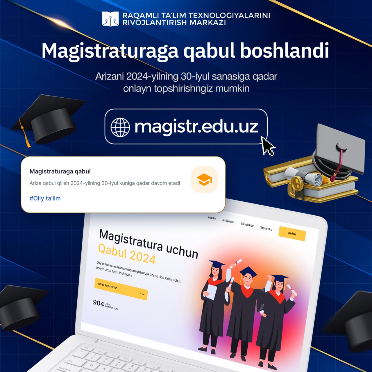 Oliy ta`lim muassasalarining magistraturasiga kirish imtihonlarida ishtirok etish uchun onlayn ariza topshirish tizimi